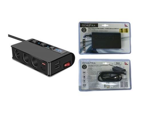 • Fiche cigarette 3 sorties 12V / 24V max.10A / 180W • 4 ports USB max. 6000 mA • Avec interrupteur principal + 3 interrupteurs lumineux séparés • Indication de la tension