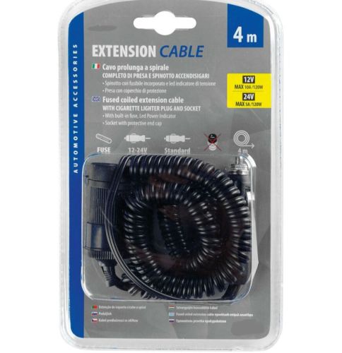 • 12 V/24 V • Câble spiralé de 4 mètres • 1 fiche mâle + 1 fiche femelle
