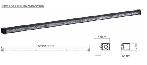 "12V + 24V / 72LED / L120,4cm x H3,5cm x D4,2cm / ECE R10 R65 / 6 type flash possible / 58W / Avec prise allume-cigare et 300cm du câble"
