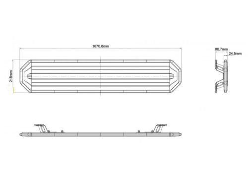 "L107cm x B21,8cm x H8cm / 180LED / ECE R65 ECE R10 Cispr25 class3 / PC lentille / Aluminium housing / 98W / Day&Night modus + control box / 500cm câble / 4 warning flashes"