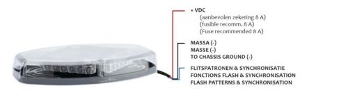"Montage fixe / L35,5cm x L20,5cm x H5,3cm / 6x4LEDS / 12+24V / 23 functions (Aussi livrable en bleu) / ECE-homologué / IP64 / R65 ECE / R10 ECE"
