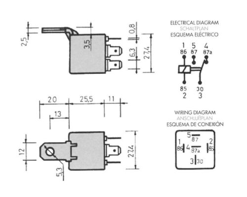 Relais 5-contacts 24V/20A (contactinverseur) + support