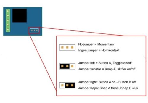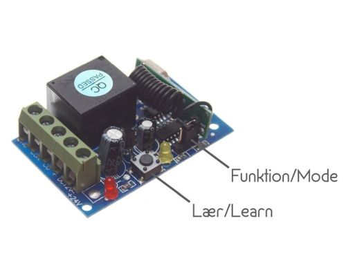 "Contrôleur de relais sans fil 12 V, 1 canal de sortie, 433 MHz. Ses 3 fonctions intégrées offrent de nombreuses possibilités. Le contrôleur dispose d'une fonction d'apprentissage permettant d'enregistrer plusieurs télécommandes. Il est possible, par exemple, d'associer plusieurs télécommandes à un seul contrôleur, ou d'utiliser la même télécommande pour plusieurs contrôleurs (jusqu'à 8 programmables simultanément). La télécommande protégée est prête à l'emploi et la pile est déjà installée. Son remplacement est facile. Un cavalier interne au relais peut être positionné de trois manières (à gauche, à droite ou absent). Sa position détermine le mode de fonctionnement du relais. Les trois fonctions sont décrites ci-dessous :Bascule : Appuyez sur le bouton A pour activer, appuyez de nouveau sur A pour désactiver. Verrouillage : Appuyez sur le bouton A pour allumer, appuyez sur le bouton B pour éteindre. Momentané / Activation par simple pression : Fonctionne uniquement lorsque le bouton A est enfoncé. Le bouton d'apprentissage sert à enregistrer l'identifiant de la télécommande dans le contrôleur. Lorsque vous appuyez sur ce bouton, une LED jaune s'allume. Vous pouvez ensuite appuyer sur le bouton souhaité de la télécommande. La LED clignote et l'identifiant est enregistré. Pour réinitialiser le contrôleur, maintenez le bouton d'apprentissage enfoncé jusqu'à ce que la LED clignote. Connexion Chaque sortie de relais est marquée A et C, tandis que l'entrée de relais est marquée B. En utilisant la nomenclature standard des relais, A correspond à « NO » (normalement ouvert) et C à « NC » (normalement fermé). Vous pouvez utiliser les deux sorties pour alimenter le relais, que celui-ci soit ouvert ou fermé. Vous pouvez également utiliser les deux simultanément. • Dimensions du contrôleur : 82 x 39 x 23 mm • Courant maximal : 10 A • Portée : 30 à 50 m • Consommation en veille : 0,25 W • Température de fonctionnement : -10 à 60 °C"