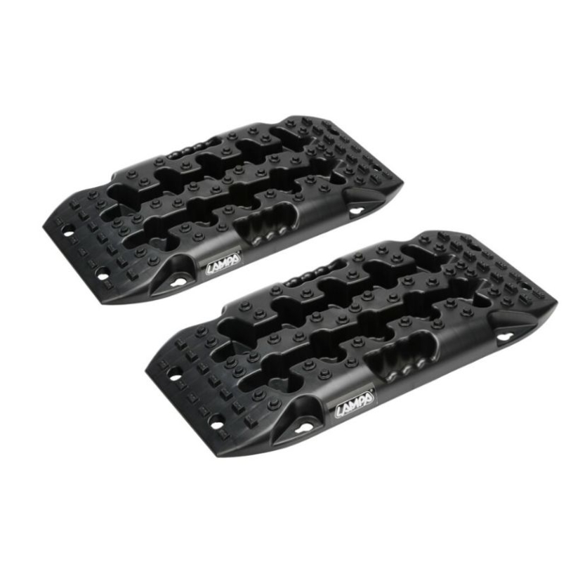 "Plaques de désensablage compactes • Elles améliorent efficacement la traction et empêchent le véhicule de s'enliser en cas d'urgence. • Leur structure offre une meilleure adhérence aux pneus, facilitant les déplacements sur des surfaces difficiles comme la neige, le sable, la boue ou la glace. • De conception compacte, ces plaques antidérapantes conviennent à tous les véhicules : voitures, remorques, SUV et pick-ups. • Fabriquées en PEHD et PEBD, elles sont performantes par temps chaud comme par temps froid et résistent à des températures de -20 °C à +40 °C. • Charge maximale admissible : 3,5 tonnes. • Dimensions : 580 x 300 x 68 mm "