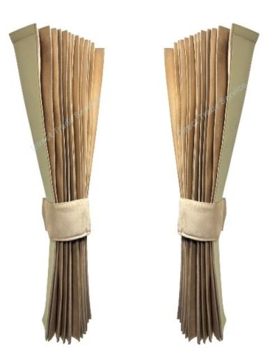 • Rideaux BEIGE • Fini avec un bandeau en cuir beige • Déjà plié • Hauteur 2x 90 cm • Longueur 2x 240 cm • 2 accroches rideaux • 2 franges • Crochets pour suspendre les rideaux NON inclus