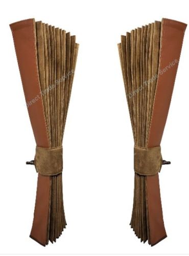 • Rideaux BRUN • Fini avec un bandeau en cuir brun • Déjà plié • Hauteur 2x 90 cm • Longueur 2x 240 cm • 2 accroches rideaux • 2 franges • Crochets pour suspendre les rideaux NON inclus