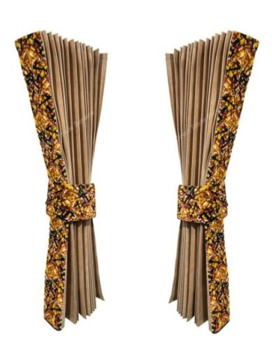 • Rideaux BEIGE • Fini avec un bandeau en peluche danois JAUNE • Hauteur 2x 90 cm • Longueur 2x 260 cm • 2 accroches rideaux en peluche danoise JAUNE • Crochets pour suspendre les rideaux NON inclus