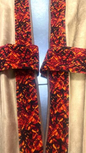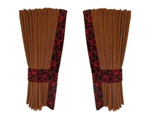 • Rideaux BRUNES • Fini avec un bandeau en peluche danois ROUGE • Hauteur 2x 90 cm • Longueur 2x 260 cm • 2 accroches rideaux en peluche danoise ROUGE • Crochets pour suspendre les rideaux NON inclus