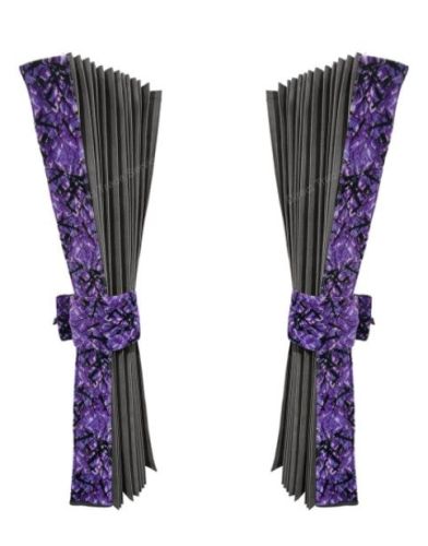 • Rideaux GRIS • Fini avec un bandeau en peluche danois MAUVE • Hauteur 2x 90 cm • Longueur 2x 260 cm • 2 accroches rideaux en peluche danoise MAUVE • Crochets pour suspendre les rideaux NON inclus