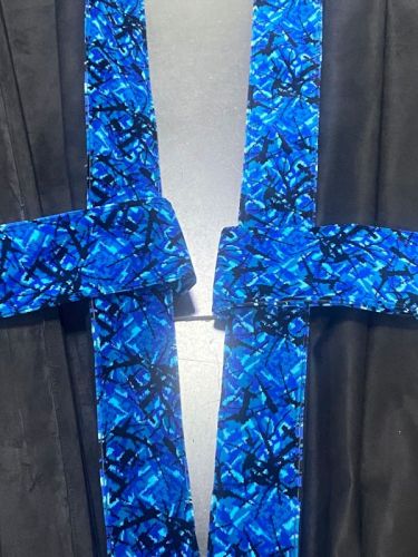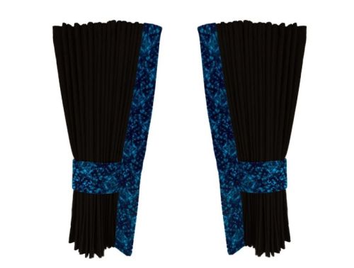 • Rideaux Noires • Fini avec un bandeau en peluche danois BLEU • Hauteur 2x 90 cm • Longueur 2x 260 cm • 2 accroches rideaux en peluche danoise BLEU • Crochets pour suspendre les rideaux NON inclus