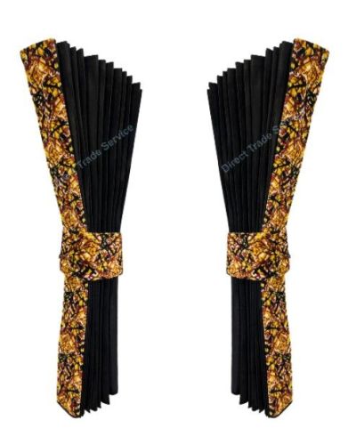 • Rideaux NOIR • Fini avec un bandeau en peluche danois JAUNE • Hauteur 2x 90 cm • Longueur 2x 260 cm • 2 accroches rideaux en peluche danoise JAUNE • Crochets pour suspendre les rideaux NON inclus