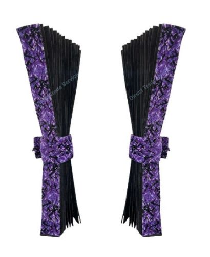 • Rideaux NOIR • Fini avec un bandeau en peluche danois MAUVE • Hauteur 2x 90 cm • Longueur 2x 260 cm • 2 accroches rideaux en peluche danoise MAUVE • Crochets pour suspendre les rideaux NON inclus