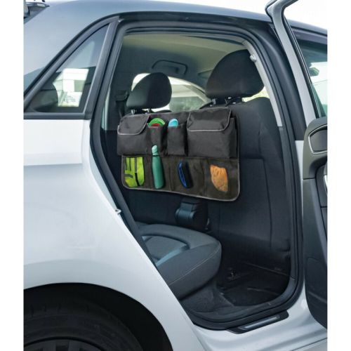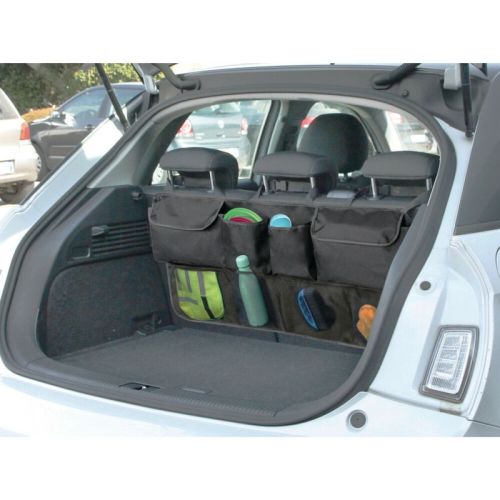 "Multi-Pocket DeLuxe, organisateur de coffre/siège Équipé de 4 grandes poches et de 4 filets pour contenir n'importe quel objet et garder l'intérieur de la voiture toujours en ordre Convient pour le montage dans le coffre ou à l'arrière des sièges avant/arrière Universel et facile à installer sur toutes les voitures Il est fixé à l'appui-tête du siège au moyen des 3 sangles réglables Lorsqu'il n'est pas utilisé, plié prend très peu de place. Dimensions : 88x46 cm"