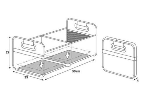 "• Idéal pour les achats quotidiens et pour le stockage dans le coffre de la voiture. • Les murs rigides et la base pour l'auto-stand, se plie facilement et prend peu de place. • Poche en mesh élastique sur un côté. • Poignées en plastique solides. • Polyester lavable résistant"