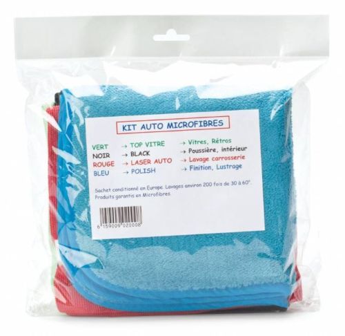 - Une Polish 40 x 40 cm pour la Finition - Une Black 40 x 40 cm pour la Poussière - Une Top Vitre 40 x 40 cm pour les Vitres - Une Tricot Laser Auto 40 x 40 cm pour le Lavage