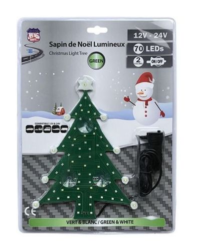 Sapin de noël illuminé 70LED blanc/vert 12V+24V