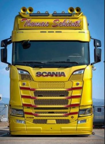 "• Pour pare-chocs MOYEN • Un spoiler monté sous le pare-chocs du Scania, ce sous spoiler améliore l'apparence du Scania. • Looks uniques • Spécialement développé pour le pare-chocs moyennement haut • Belles lignes fluides • Disponible avec diverses options de lampe • Profondeur 12 cm Attention : il s'agit d'un spoiler de pare-chocs pour le modèle de pare-chocs central de Scania."