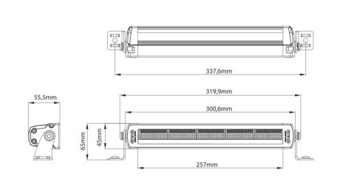 Type of LED White:OSRAM Red:ZeMe Amber:Refond PCS LED´s 75 Voltage (V DC) 10-32V DC Consumption specific function (w) 12V Tail light: 9.4W Brake light: 16.2W Indicator: 5.2W Reversing light: 3.9W Consumption specific function (w) 24V Tail light: 9.4W Brake light: 16.2W Indicator: 5.3W Reversing light: 3.9W Functions Tail light brake light indicator reversing light Theoretical lumen Reversing light: 1900 Actual lumen Reversing light: 323 1 LUX @ m Reversing light: 13 Kelvin Reversing light: 6000K IP-class 67/69K Colour housing Black Colour lens Clear Colour LED´s White red amber Beam pattern Flood Position light Yes red Connection Cable Cable length (mm) 2500 Material bracket Stainless steel side bracket and die cast aluminum slided feet Material housing/chassi Aluminium Material lens Polycarbonate Length (mm) 300.6 Depth (mm) 55.5 Height (mm) 45 Height including bracket (mm) 65 Operating temperature -30°C – +65°C ADR-approved No E-approved Yes According to regulation ECE R148 EMC ECE R10