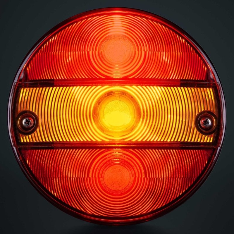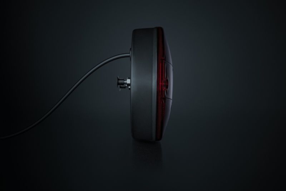 "Feu arrière, feu stop et clignotant 12-24 V, 2,5 W, IP69K, câble de 50 cm Homologué CE R148D, CEM R10 Diamètre : 142 mm, hauteur : 50 mm"