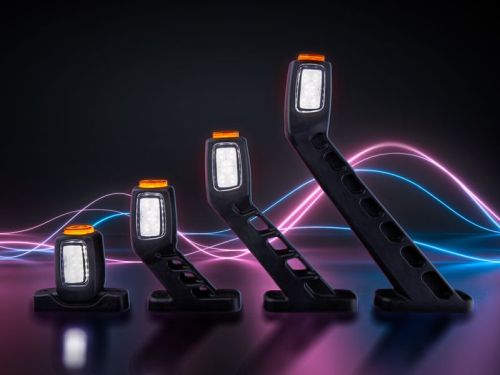 "Type of Lamp LED PCS LED´s Side-8 pcs, front-12pcs , rear-12pcs Voltage (V DC) 12-24 Functions Front position, rear position, side position IP-class IP6K9K Colour housing Black Colour lens Dark Clear Colour LED´s White, Red and Amber Position light Yes Material housing/chassi Rubber Material lens Polycarbonate Length (mm) 259 Depth (mm) 46 Height (mm) 207.5 CC (mm) 80 Operating temperature -40 - +60°C ADR-approved No E-approved Yes According to regulation ECE R148 EMC ECE R10"