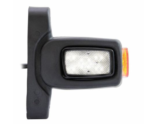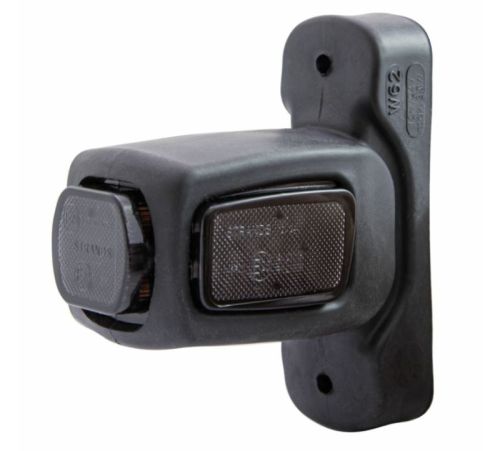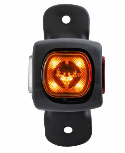 "Type of Lamp LED PCS LED´s Side-8 pcs, front-12pcs , rear-12pcs Voltage (V DC) 12-24 Functions Front position, rear position, side position IP-class IP6K9K Colour housing Black Colour lens Dark Clear Colour LED´s White, Red and Amber Position light Yes Connection Cable Cable length (mm) 1000 Material housing/chassi Rubber Material lens Polycarbonate Length (mm) 89 Depth (mm) 46 Height (mm) 10,4 CC (mm) 80 Operating temperature -40 - +40°C ADR-approved No E-approved Yes According to regulation ECE R148 EMC ECE R10"
