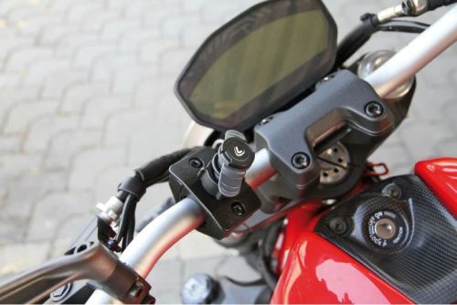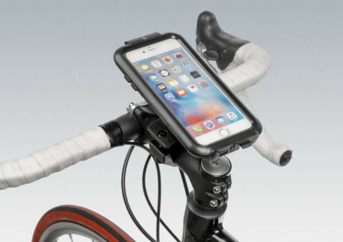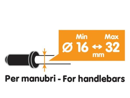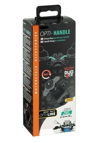 "Opti Handle, fixation pour guidon • Convient pour se fixer sur des guidons Ø 16 à 32mm • Entièrement réglable, permet l'utilisation du smartphone verticalement et horizontalement • Spécifique pour les supports de la ligne OPTI (Onze ref. 03398704 / 03398705)"