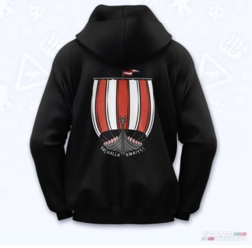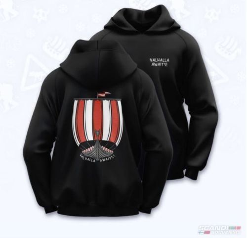 Sweat à capuche noir "Valhalla Awaits!" Medium