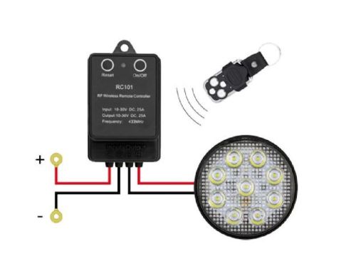 "• Télécommande pour lampes flash, longues-portées à LED, lampes de travail à LED • 10-30 V • Max. 25A • Max. distance 50m • Imperméable • Frequency 433Mhz • On/off • 9 flash patterns • KeyA: Turn on/of • KeyB: Flash forwards • KeyC: Flash backwards • KeyD: SOS exclusive mode"