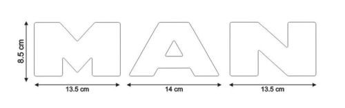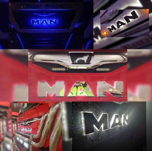 Texte MAN illuminé en ORANGE LED inox/plexi 24V (H:8,5cm)    -   MAN
