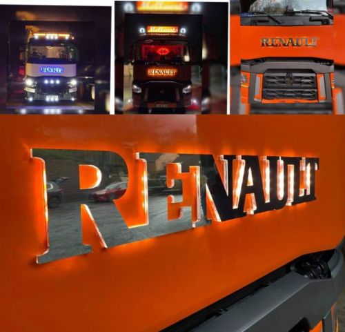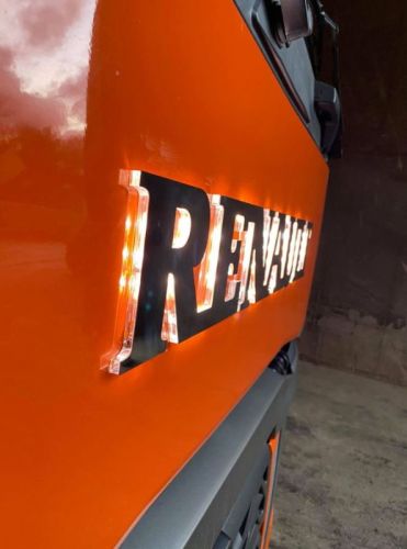 Texte RENAULT illuminé en ROUGE LEDinox/plexi 24V    -   RENAULT
