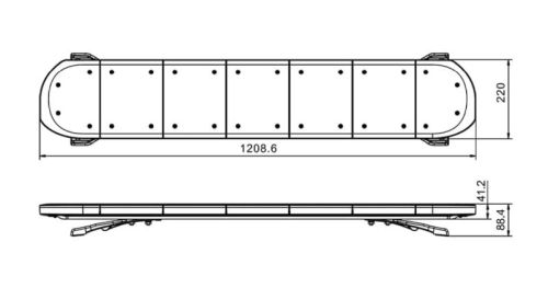 "La gamme TRALERT® Omnino Air-T comprend ce gyrophare LED d'une longueur de 1208,6 mm. Conçu pour les véhicules 12-24 V, ce modèle offre une solution polyvalente pour les applications d'avertissement et de signalisation additionnelle. Ce gyrophare combine les fonctions de feu arrière, de feu stop et de clignotant. Sa lentille en polycarbonate et son boîtier en aluminium lui confèrent une grande résistance aux chocs et aux intempéries. Ce gyrophare LED est doté d'une extrémité filetée ouverte et d'un câble de 450 cm. Son montage est librement ajustable grâce à des supports, permettant un positionnement flexible. Avec un indice de protection IP69K, il est adapté à une utilisation extérieure intensive et au nettoyage haute pression. Ce gyrophare LED est conforme aux normes CE, ECE-R10 et ECE-R65 Classe 2. – La barre de gyrophares LED la plus complète jamais conçue – Fonctions : indicateur de circulation, projecteur, feu arrière et feu stop – Télécommande pratique disponible / NON inclus (Notre ref. 03409552) – 62 modes d’éclairage au choix : clignotant, alterné et régulateur de vitesse Tension : 12-24 V Type de mode : Clignotant, Signalisation routière, Alterné, Régulateur de vitesse Certification : CE, ECE-R10, ECE-R65 Classe 2 Garantie : 2 ans Panneau de commande : Non inclus Compatible avec : 4x4, Véhicule utilitaire, Pelle mécanique, Véhicule d’intervention d’urgence, Tracteur, Camion Dimensions : 1208,6 x 220 x 41,2 mm Couleur de la lumière : Orange Couleur du feu de signalisation : Orange Fonctions du feu de signalisation : Feu arrière, Alterné, Régulateur de vitesse, Clignotant, Indicateur, Feu stop, Signalisation routière, Projecteur de travail, Projecteur Modes de clignotement : 62 Type de mode : Clignotant, Signalisation routière, Alterné, Régulateur de vitesse Nombre de LED : 20 modules Indicateur : Oui Feu arrière : Oui Feu stop : Oui Connecteur : Extrémité à fils nus Longueur du câble : 450 cm Classe de protection : IP69K Support de fixation : Largeur réglable Support de fixation : Réglage libre Matériau du boîtier : Aluminium Couleur du boîtier : Noir Matériau de la lentille : Polycarbonate Couleur de la lentille : Transparent"