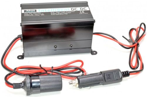 "Input 20-30V / Output 12-13, 8V / 20Amp continious / Avec prises allume-cigare"