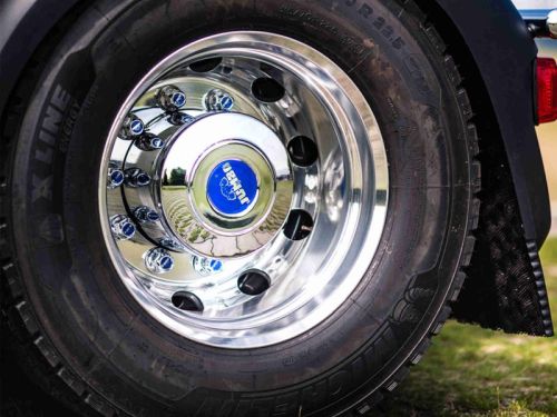 Stainless Steel mirror polished For 10 hole / pcd 335 For 22.5" wheels Fits standard nuts 26mm bolt hole (adapter discs) & Sleeve Nuts (Aluminum Wheels with 32mm bolt hole) Max. heigth of hub 210 mm