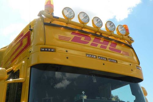 Trous prévus pour 5 feux de position. 8cm plus large que la visière d'origine Scania. En plastique. Cabine Highline + cabine plat.