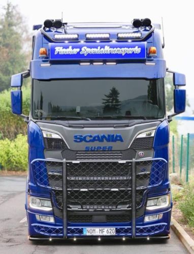 Base en polyester blanc / Pas transparant / Hauteur de 33cm / Pour Scania R/S new generation 2016-> / Prévue avec 5 trous pour monter feux de position d'origine (Pas inclus) /A monter avec trous d'origine. Ce produit nécessite un pré-traitement en un apprêt.