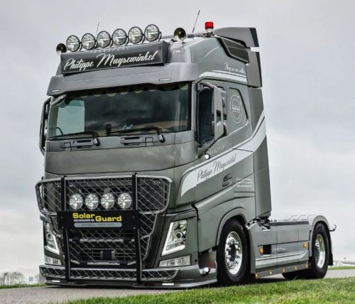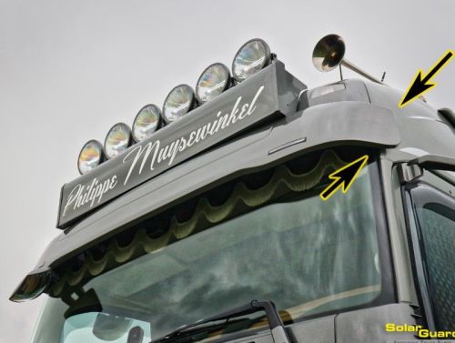 "Spécialement conçu pour le Volvo FH4/5 utilisant le système d'avertissement de collision avant, système de caméra. Le type normal de pare-soleil a interféré avec le système, provoquant des messages d'erreur. Ce pare-soleil pour le Volvo FH4/FH5 se compose d'une seule pièce et remplace le pare-soleil d'origine. Ce pare-soleil continue plus long sur le côté de la cabine. La ligne médiane du pare-soleil a changé de position, elle est alignée avec la plaque du caisson lumineux du pare-soleil Look durs Facile à assembler Ajustement fantastique Livraison rapide Environ 30% inférieur à l'original Toute variation d'éclairage est également possible pour ce pare-soleil. Attention, n'oubliez pas de commander votre rallonge de miroir Ce produit nécessite un pré-traitement en un apprêt. Construction en polyester de haute qualité pour une finition durable et soignée, et un toucher haut de gamme. Profondeur : 32,5 cm 2 TROUS pour feux Convient aux camions équipés d'une caméra FWC Les coins épousent la cabine pour un aspect uniforme et robuste Installation facile. Se fixe aux points de montage d'origine et se connecte comme prévu en usine Les lignes suivent la plaque d'éclairage d'origine Volvo pour un alignement parfait et une face avant épurée "