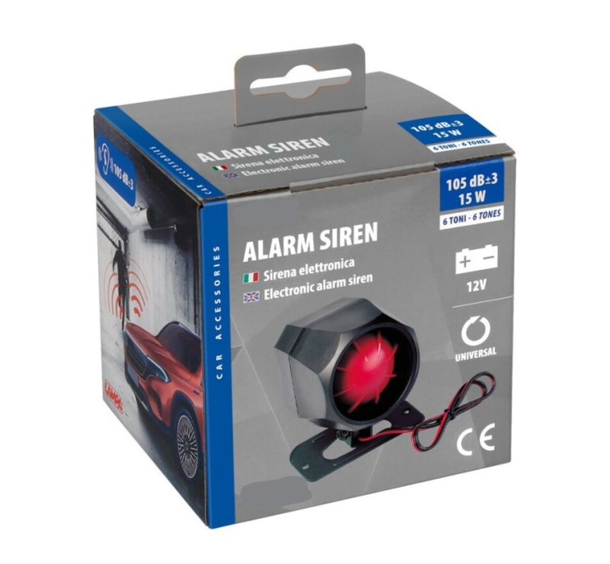 "Alarmsirene met 6 tonen, 12V - 1,2A - 105dB±3"
