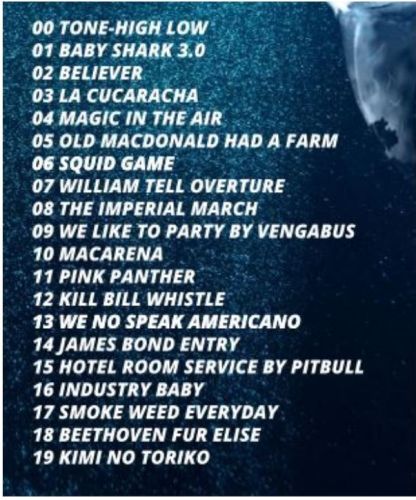 • Basuri muzikale luchthoorn 3.0 12V + 24V • 6 luchthoorns zorgen voor een geluid van 130dB (op 3/4 km nopg te horen) • 20 verschillende Europese melodiën • Luchtdruk nodig ! (Maximale druk 11 bar) • Lengte kabel +- 3m (van hoorn naar ontvanger) • Aluminium • L51cm / B39cm / H10cm 0 Tone-high low 1 Baby shark 3.0 2 Believer 3 La cucaracha 4 Magic in the air 5 Old Macdonald had a farm 6 Squid game 7 William Tell overture 8 The imperial march 9 We like to party by Vengabus A Macarena B Pink Panther C Kill Bill whistle D We no speak Americano E James Bond Entry F Hotel room service by Pitbull G Industry baby H Smoke weed everyday I Beethoven fur Elise J Kimi no toriko