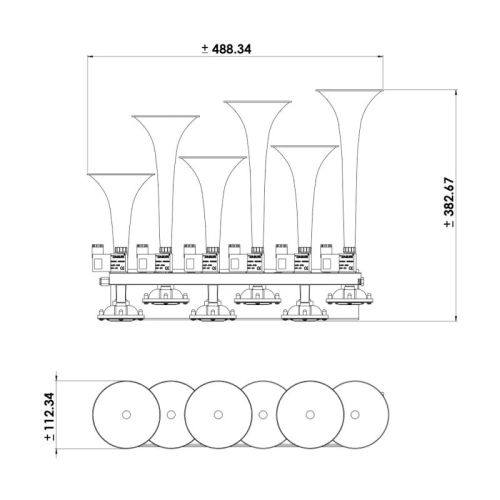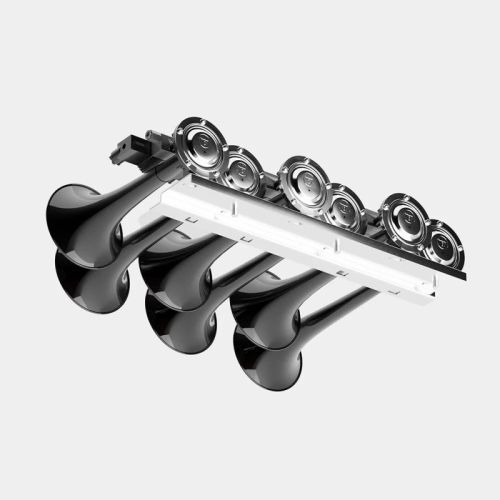 "• Basuri muzikale luchthoorn 5.0 12V + 24V • 6 luchthoorns zorgen voor een geluid van 130dB (op 3/4 km nopg te horen) • 24 verschillende Europese melodiën • Luchtdruk nodig ! (Maximale druk 11 bar) • Lengte kabel +- 3m (van hoorn naar ontvanger) • Aluminium • L51cm / B39cm / H10cm 0 Baby Shark 5.0 1 Neil Diamond - Sweet Caroline 2 The Chicken Dance 3 Shakira - Hips Don't Lie 4 Shakira - Waka Waka 5 Cliff Richard - Congratulations 6 Vengaboys - Boom, Boom, Boom, Boom!! 7 Night Rider theme song (Stu Phillips) 8 Harry Styles - As It Was 9 Doreamon theme song A Manu Chao - Me Gustas Tu B Daddy Yankee - Gasolina C Shakira - La La La D Ringa Ringa Roses theme song E Michael Jackson - They Don't Care About Us F Eiffel 65 - Blue (Da Ba Dee) G a-ha - Take On Me H Pitbull - Fireball I Twinkel, Twinkel, Little Star J Boney M - Rasputin K Jason Derulo feat. Snoop Dogg - Wiggle L AC/DC - Thunderstruck M Infinity N Warning "