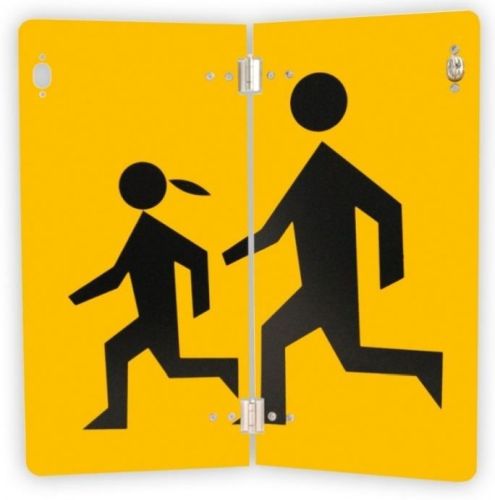 "Informatiebord "Opgepast vervoer schoolkinderen" Het bord informeert over het vervoer van jongeren • Afmetingen: 300x300mm • Het bord is bedekt met reflecterende folie • Bord dat in het midden kan worden gevouwen • Gewicht per stuk: 0,25 kg • Aluminium"