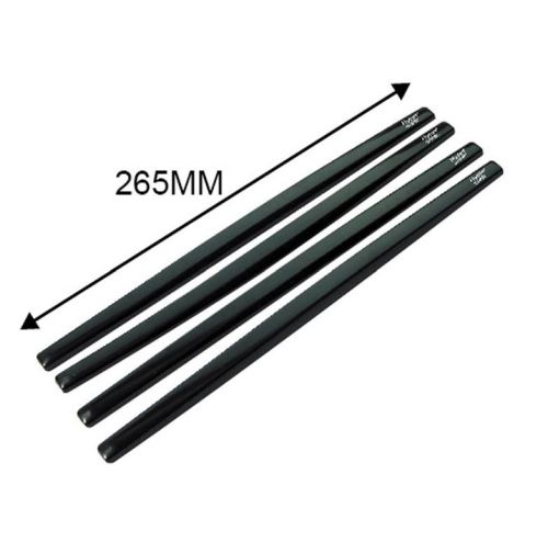 "- Afmeting 265x12mm - Zelfklevend middels dubbelzijdig 3M tape - Zwart - Zacht absorberend materiaal - Set à 4 stuks, voor zowel voor- als achterbumper"