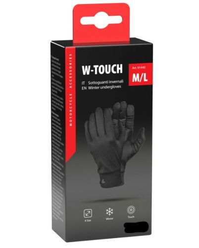 "W-Touch, winteronderhandschoenen - M/L Comfortabele pasvorm, perfecte grip op de handen, garandeert een betere thermische isolatie en meer warmte. Gemaakt van speciale polyestervezels met hoge elasticiteit en maximaal comfort. Ideaal voor koude seizoenen. Touchscreenstof op inches en indexen voor het gebruik van apparaten (gps, tablets en mobiele telefoons). Elastische manchetten met reflecterend logo"