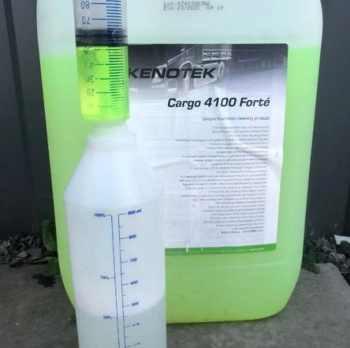 "Cargo 4100 Forté is een zeer krachtige, geconcentreerde alkalische reiniger voor alle voertuigen. Cargo 4100 Forté heeft een sterke ontvettende werking en zorgt voor een efficiënte reiniging van hardnekkig traffic film. De specifieke schuimvorming garandeert een goede dekking over het ganse voertuigoppervlak en zorgt zo voor een verhoogde losweekkracht en betere efficiëntie. Cargo 4100 Forté is een uniek product en uitermate geschikt voor touchless toepassingen. De specifieke schuimvorming garandeert een goede dekking over het ganse voertuigoppervlak en zorgt zo voor een verhoogde losweekkracht en betere efficiëntie. • Extra sterk en geconcentreerd • Goede schuimdekking voor beter contact met het voertuig • Reinigt olie, vet, insecten en statische wegfilm • 3 in 1: carrosserie ontvetter, alkalische wielenreiniger en insectverwijderaar • Dosering: 0,5-2%. • Laat het product niet drogen op oppervlakken. • Spoel grondig met water. Hoe gebruik ik Kenotek 4100 Forté? Verdunningen : Algemene Reiniging (2 tot 2,5%): 2% op 1 liter reservoir = 20 ml product 2,5% op 1 liter reservoir = 25 ml product Insecten en Hardnekkig Vuil (4 tot 5,5%): 4% op 1 liter reservoir = 40 ml product 5,5% op 1 liter reservoir = 55 ml product Zware Reiniging (Remstof, Ontvetten) (6,5% tot 8%): 6,5% op 1 liter reservoir = 65ml product 8% op 1 liter reservoir = 80 ml product Verdun het product volgens de bovenstaande instructies met behulp van een maatbeker en giet de verdunning vervolgens in het schuimkanon voor de gewenste reiniging. Spuit het voertuig van onder naar boven in met behulp van het schuimkanon. Laat Cargo 4100 Forté 3-5 minuten inwerken zodat het vuil effectief kan worden losgemaakt. Spoel het product weg van onder naar boven met een hogedrukreiniger. Spoel eventuele restanten grondig weg. De auto is nu op een contactloze manier gewassen. Waarschuwingen: Dit product is uniek, en het is belangrijk om de voorgeschreven verdunningen strikt te volgen. Een onverdund geconcentreerd product kan schade veroorzaken. Uitsluitend gebruiken met een schuimkanon en hogedrukreiniger. Niet gebruiken als shampoo in een emmer."