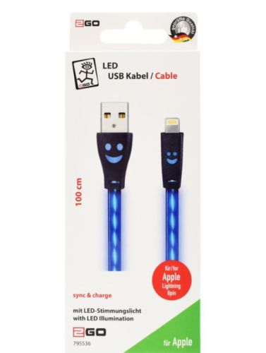 > Laadkabel USB -> Iphone LED BLAUW (100cm)