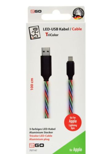 Laadkabel USB -> Iphone LED RGB (100cm)