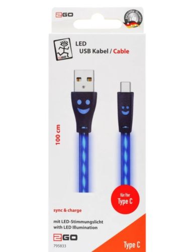 Laadkabel USB -> Type C LED BLAUW (100cm)