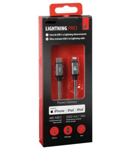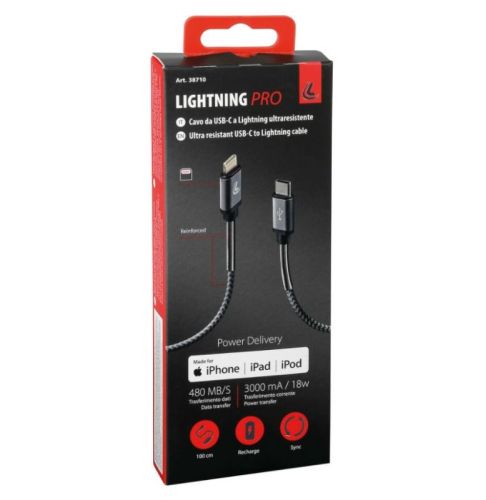 "Kabel Usb Type-C > Lightning Iphone - 100 cm Opladen en data. Ondersteunt Power Delivery-technologie. Nylon gevlochten, ultraresistente, versterkte nek en aluminium structuur"
