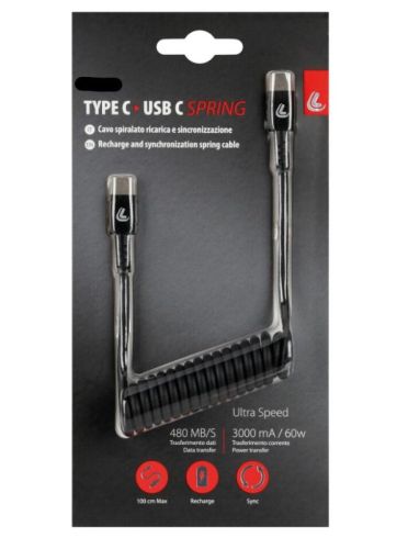 Laadkabel spiraal USB-C -> USB-C (100cm) 3000mA/60W