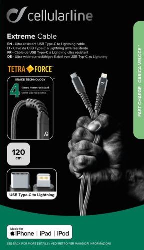 Laadkabel zwart USB-C -> LightningiPhone (120cm)