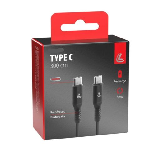 • USB Type-C-kabel > Type-C - 300 cm - Zwart • Opladen en dataoverdracht • Speciaal voor snelladen (3000 mA / 18 W) • Verstevigde aansluiting